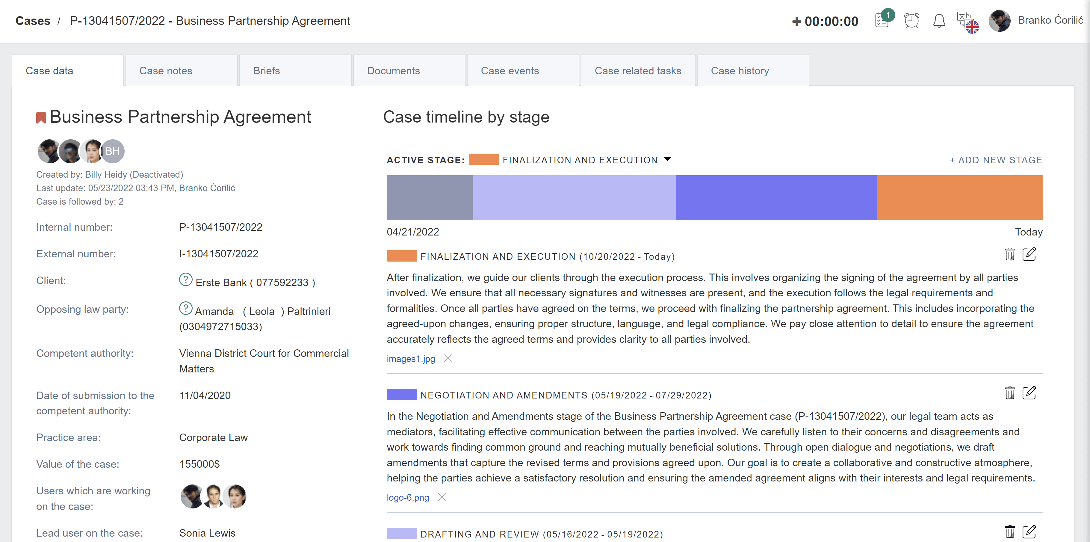 - Follow the case history: With our case management feature, you can easily track the history of a case from beginning to end. You can see all the events that have taken place, all the documents that have been filed, and all the tasks that have been completed. This gives you a complete picture of the case and helps you stay on top of everything.