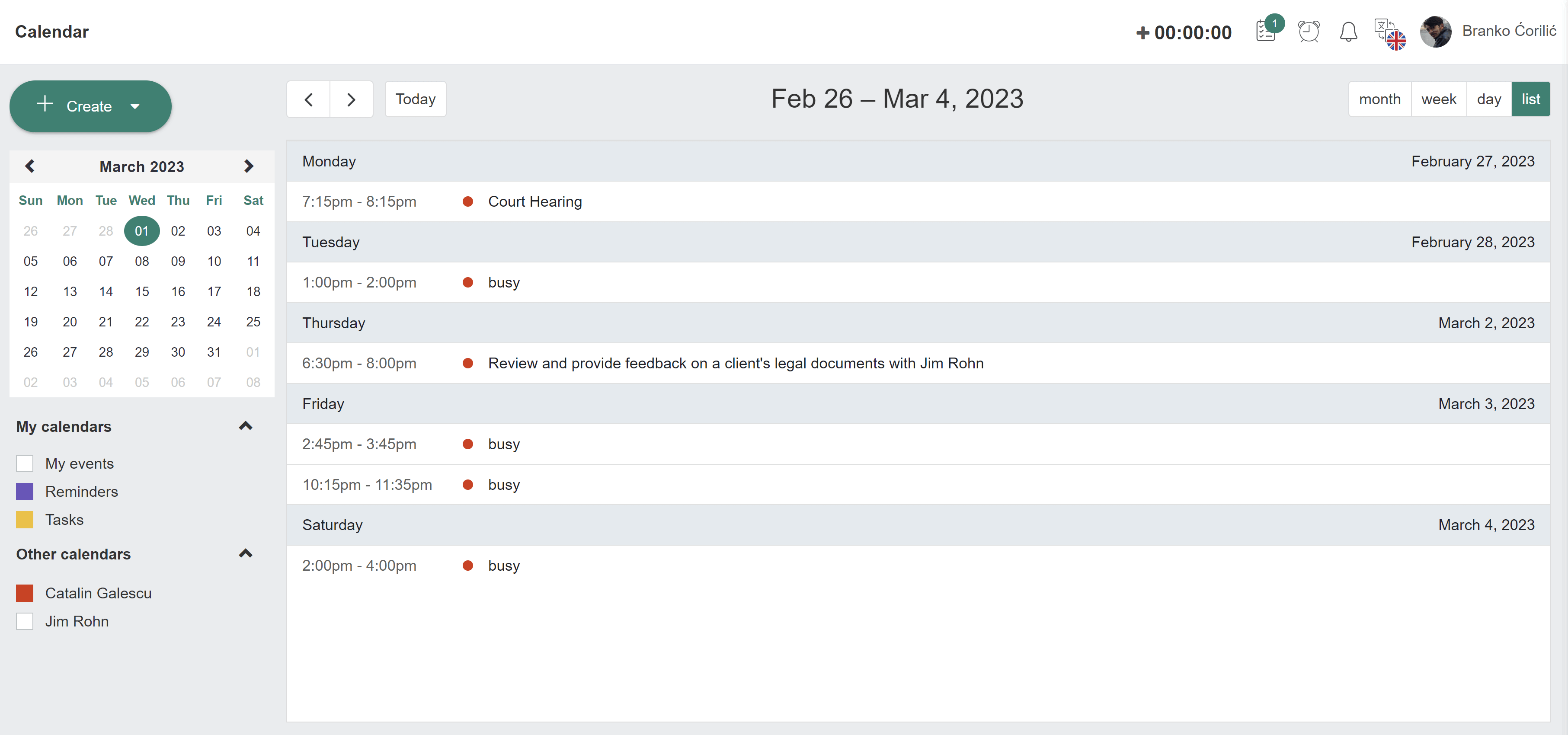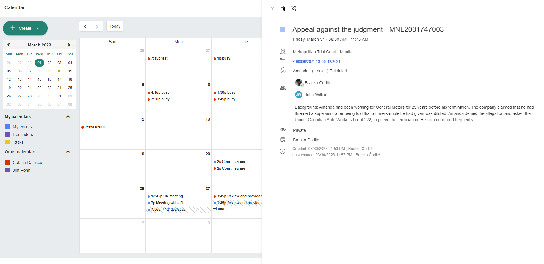 - View multiple calendars at once: With our calendar feature, you can view multiple calendars at once, so you can easily see what everyone in your law practice is working on. This makes it easy to schedule meetings and collaborate with your team.